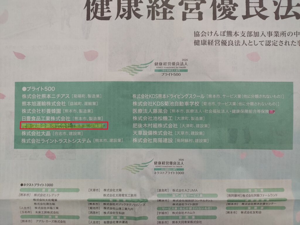 熊本日日新聞に社名が掲載されました。